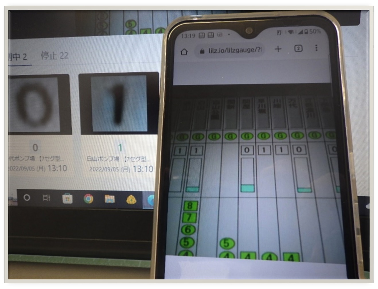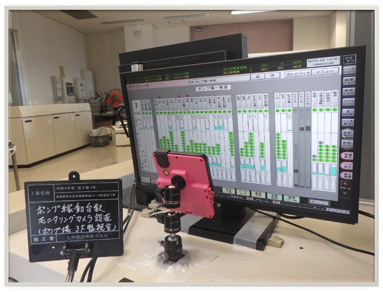 上流側のポンプが稼働すると、作業をしている管内に多量な排水が流入し、みるみる水位が上昇し作業が出来なくなる危険を伴うので、現在のポンプが動いている台数が配信されて来ます。