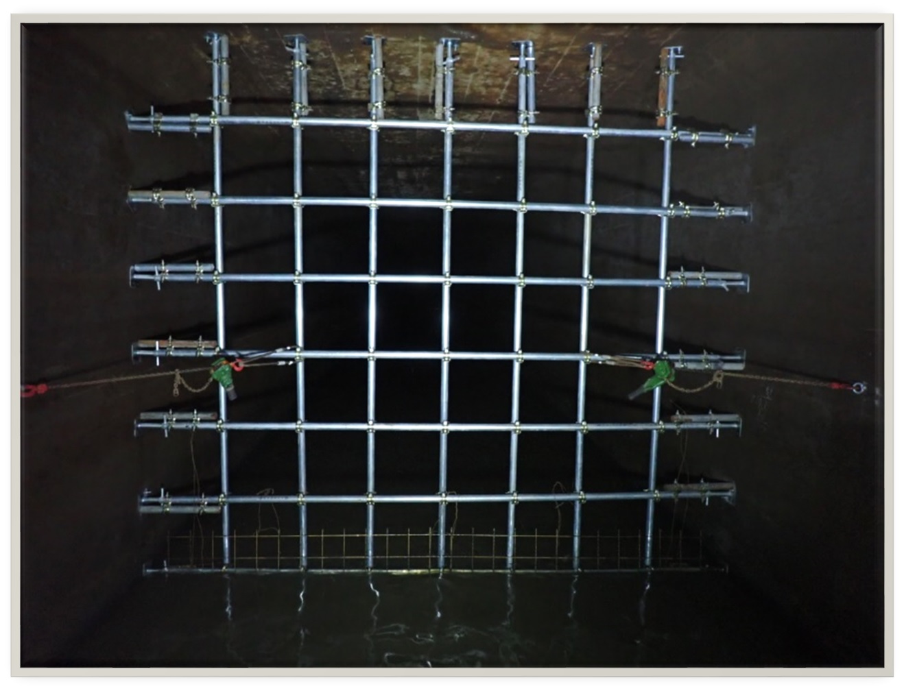 組立が進むにつれ支保工が網の目状となるので管内での移動が大変です・・・