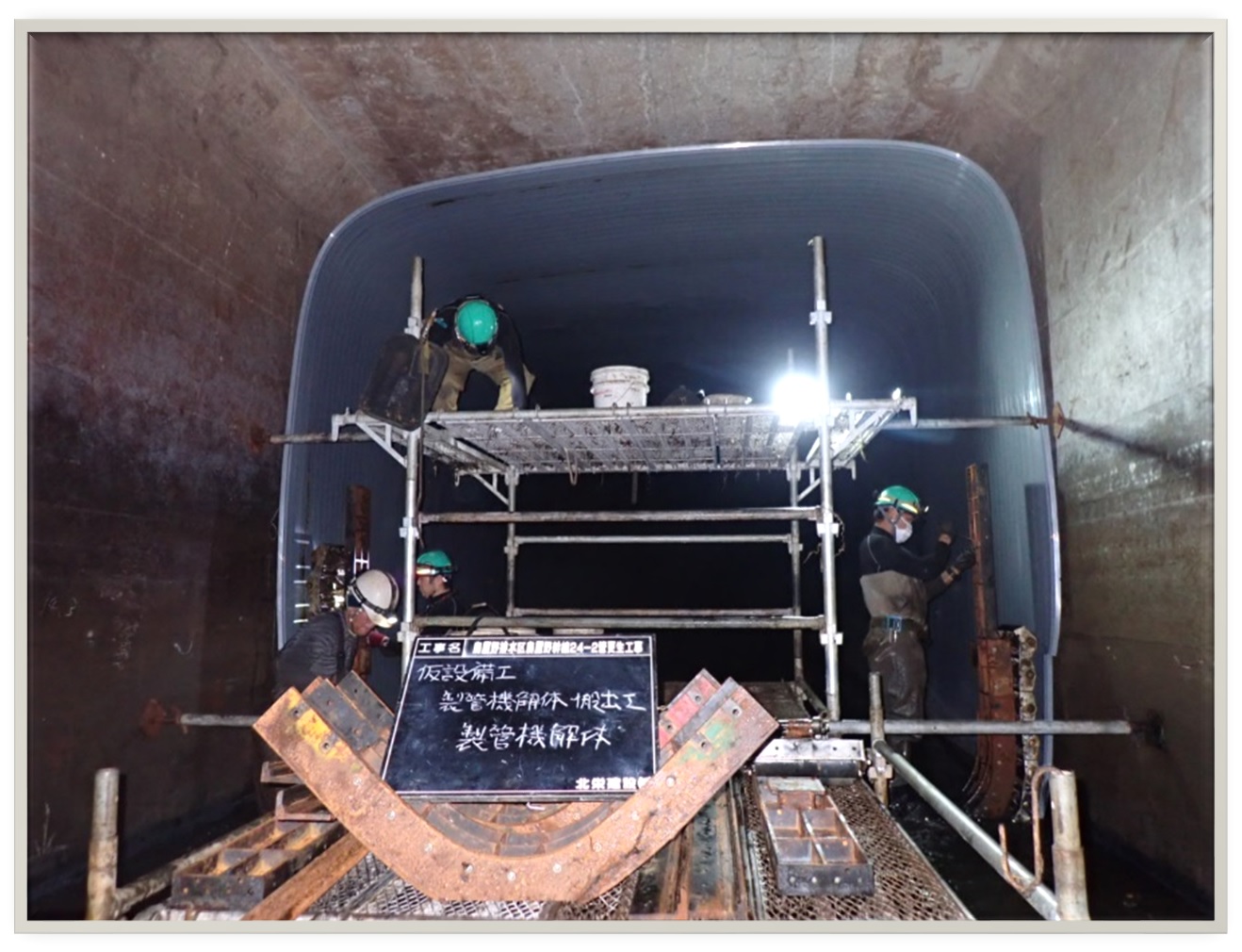 製管作業が完了したので、製管機を解体し地上へ搬出します。