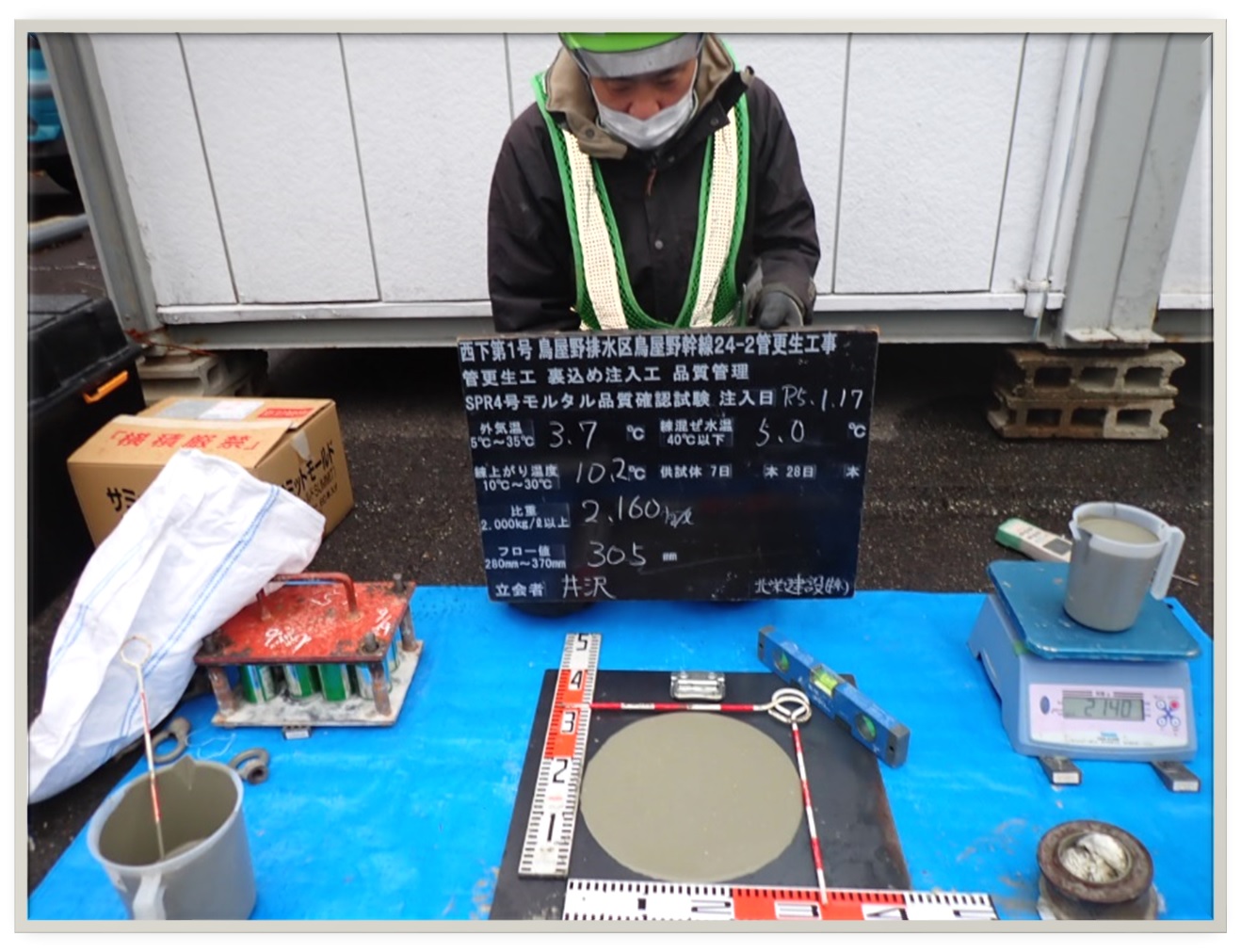 これで地上で製造したモルタルが管内を巡り終わった後に適合しているかどうかが分かるというわけです。